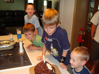 -This weekend was full of cake...lots of cake :) Saturday we had the Anderson's over. I made Ethan a Goomba cake to celebrate his birthday. It was special to me because we've been celebrating birthdays with the Anderson's since Ethan was a newborn. It was great to have the kids together again. They had a wonderful time.
